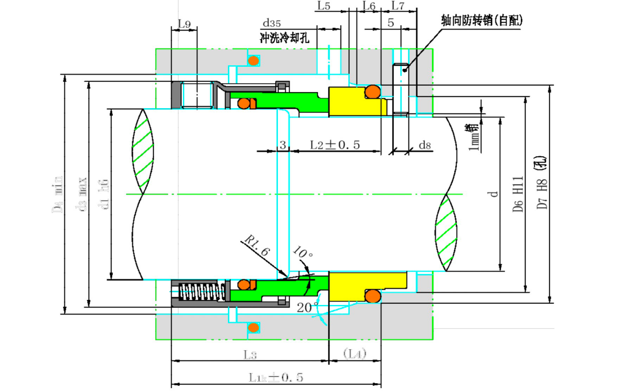 结构特点:单端、多弹簧、不平衡(58U和59U)和平衡(58B和59B)类型,适合任何旋转方向,并由传动套驱动。该机械密封结构紧凑、轴向尺寸短、密封面载荷平衡。它们可以完全替代约翰克兰 58B、58U、59B、59U 型和其他类似型号。
