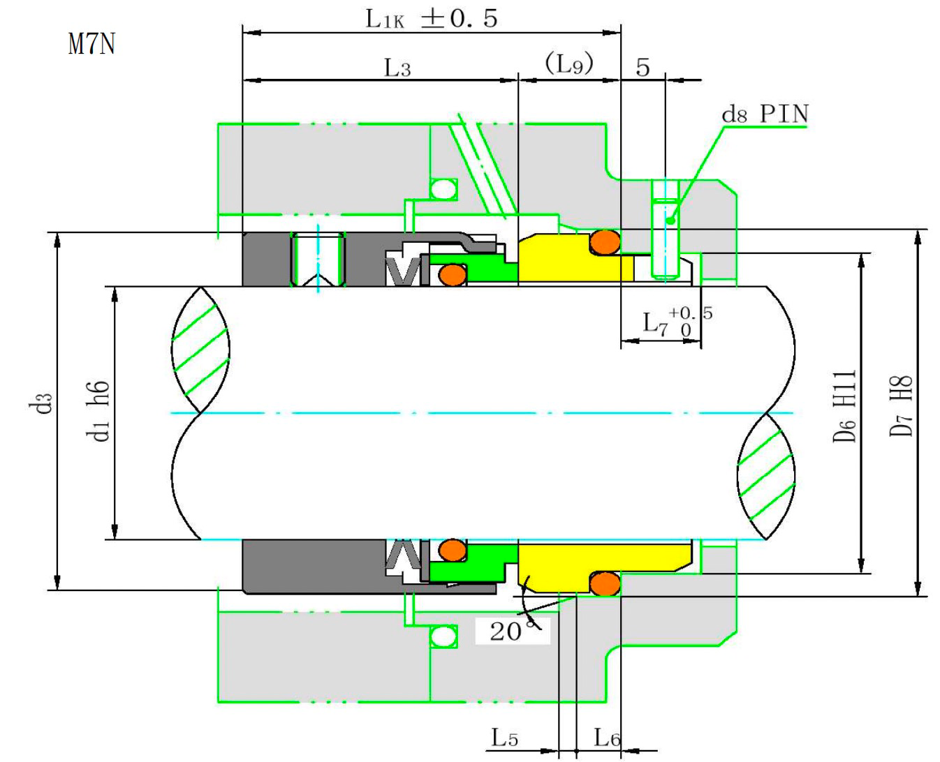 结构特点:单密封、波形弹簧、不平衡型、双向旋转、凸耳传动机械密封。该密封传动方式简单,通用性强。 M7N型波形弹簧结构适用于含有颗粒或结晶物质的高浓度介质。该型号安装方便,补偿性能优良。端面载荷分布均衡,保证密封性能可靠稳定。