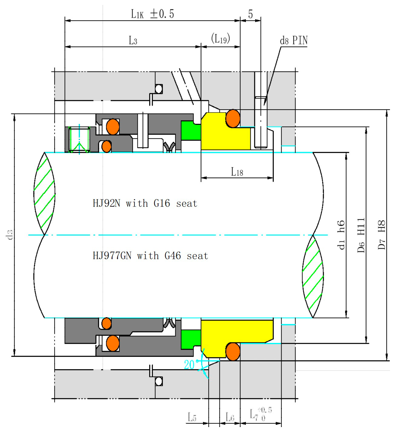 HMHJ92N机械密封采用单密封布置,内装式设计。它是平衡型,由驱动销驱动。旋转环密封采用O型圈,自紧效果好,性能可靠。波形弹簧结构允许根据具体的操作要求选择不同的材料、摩擦副材料和配置。